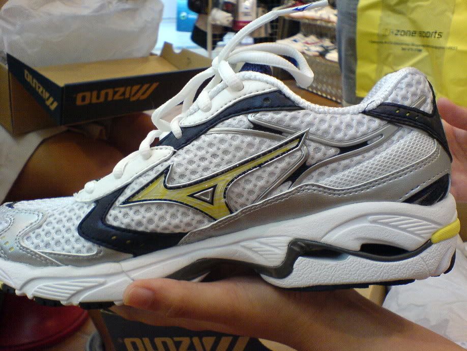 and yes, that deterred me from going to Scream (HC's Halloween Party) yesterday night :( bet it was fun. walked around queensway for shoes with mel rina and lene. the purple version of aw yong's asics are so pretty! love at first sight :) but it felt heavy when i tried them on. probably cos ive been wearing my ultra light gel-feather for too long. haha. decided to try mizuno since ong kc has been telling me how good his nirvanas were. we tried this pair of really ugly wave riders but it felt so comfy! UGLY but COMFY. haha. in the end we decided on that. 3 of them bought and im going back today to get them. argh, i still cant that pair of pretty asics out of my mind : oh and we bought laces to beautify our ugly shoes. sounds like a desperate attempt eh? haha, ok it isnt that bad la. and it's fun to have the same shoes :)